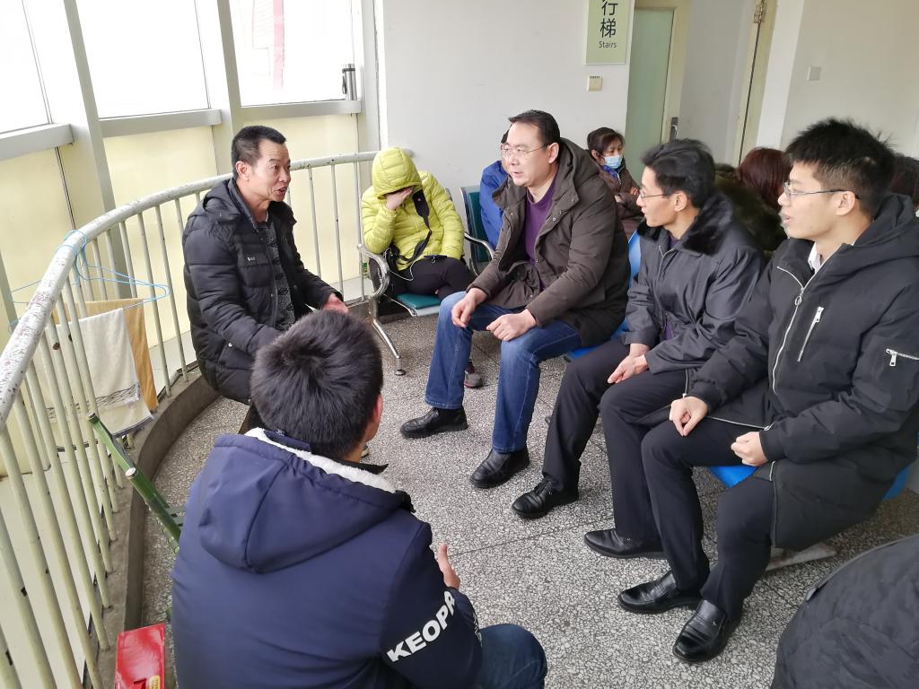 1月30日下午,经济学院党委书记吴红文、副书记任海伦,辅导员朱海林一行三人来到省千佛山医院走访看望2017级学生吴君权。该生期末考试前夕母亲刚遭遇车祸,在重症监护室外的楼道内,领导老师向家长及学生详细询问病情,了解医保政策及报销程序等,阐明学校对于困难生的资助和帮扶政策,鼓励吴君权及其家人树立信心,积极配合治疗,悉心照顾其母争取早日康复。