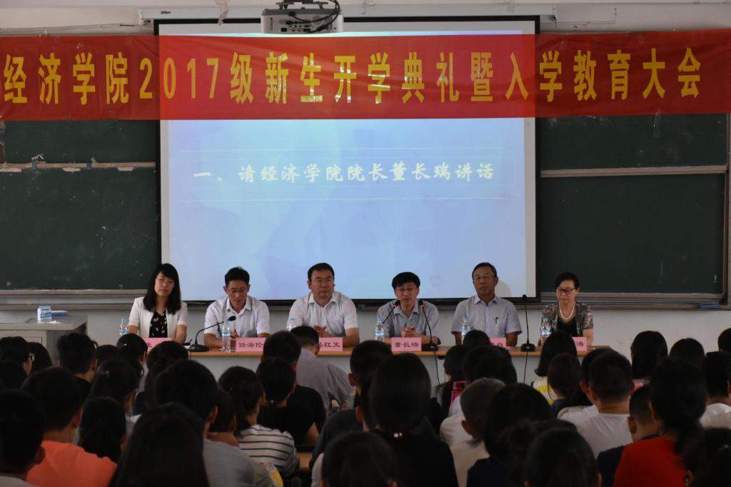 (通讯员:田永佳 王亚琨)9月12日中午12:30,经济学院2017级新生开学典礼暨入学教育大会于圣井校区敏行楼B5-201教室隆重举行。院长董长瑞,党委书记吴红文,副院长陈保启,党委副书记任海伦、仵颖涛,院团委辅导员和教师代表出席会议。2017级全体新生到场参加,会议由任海伦主持。