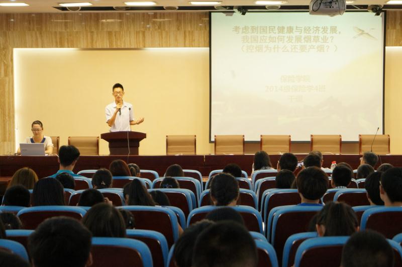 本次知识竞赛历时半个月,分为初赛和决赛两部分。初赛采用闭卷笔试的形式,内容涉及西方经济学、政治经济学等重点学科,经过严格筛选共有9名同学进入决赛。决赛分经济学科学术风采展示、必答抢答、看视频论述三个环节。经济学科学术风采展示环节中,各参赛同学按照提前抽取的论题和顺序,以独特的经济学视角、条理清晰的经济学思维进行演讲。“从一带一路到亚投行,中国的战略构想是什么”深入剖析当下我国面临的产业升级、结构转型等严峻形势,揭示我国在扩大对外商品输出、维护世界金融市场稳定等方面的重大战略构想;“对中国向非洲大规模投资的看法”引用标准普尔研究成果,展现中非友好经济往来带给两国的“双刃”影响;“怎样看待微信营销”贴近现实生活,引用生动简明的事例客观分析微商这种新的营销方式的利弊和“信任经济”。第二环节为必答抢答环节,选手思维缜密、反应敏捷,显示出较高的理论水平和广阔的知识视野;看视频作答环节,选手们认真观看视频《有关波兰经济的故事》,围绕“近年波兰经济转轨”就三位评委的现场提问进行作答,高度的概括、严谨的逻辑赢得阵阵掌声。最终,经济学院郑庆彪同学荣获一等奖,经济学院雷铭、郭恩秀同学获二等奖,保险学院于琨同学、经济学院王丽军同学、金融学院栾经亚同学获三等奖。