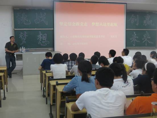 5月30日晚18:00,经济学院党总支书记吴红文在圣井校区敏行楼B5201教室为2012级全体学生作了题为“坚定信念跟党走,梦想从这里起航”的讲座。此讲座系我院“红心向党,青春激扬”主题教育系列活动之一。
