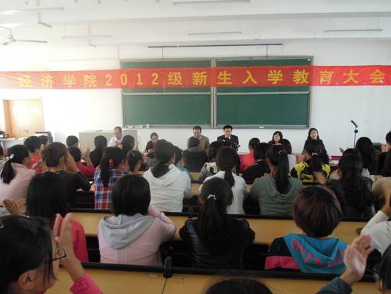 入学教育大会的顺利召开有利于我院新生尽快熟悉和适应大学生活,明确学习目标,树立远大理想,增强服务社会的责任感和使命感。我们期待我院师生共同谱写经济学院灿烂辉煌的新篇章。