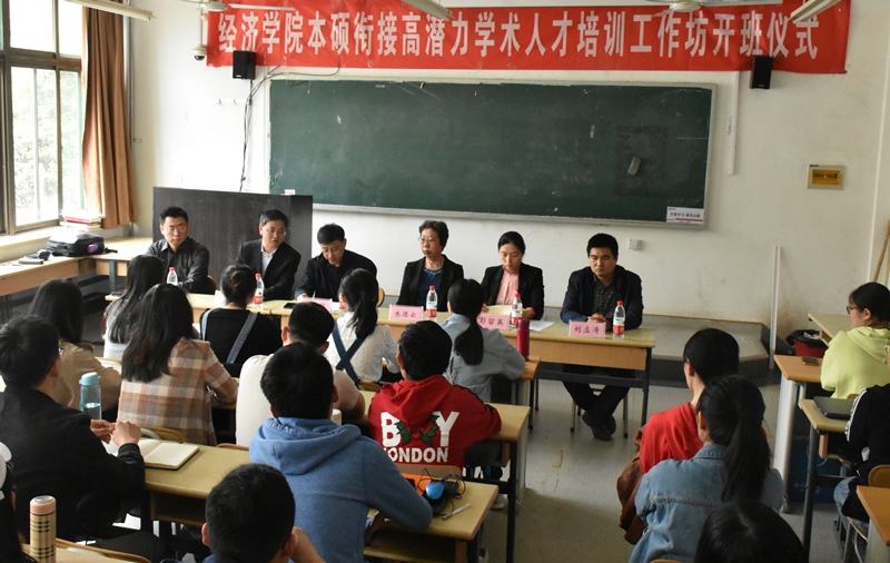 (通讯员:常群)5月9日,经济学院主办的"本硕衔接高潜力学术人才培训工作坊"在舜耕校区教学楼2306教室举行开班仪式。经济学院院长董长瑞、经济研究中心主任朱德云、研究生副院长杨明海、经济学院副院长彭留英、经济研究中心副教授李启航等出席此次开班仪式,开班仪式由彭留英副院长主持。工作坊全体学员参加此次开班仪式。