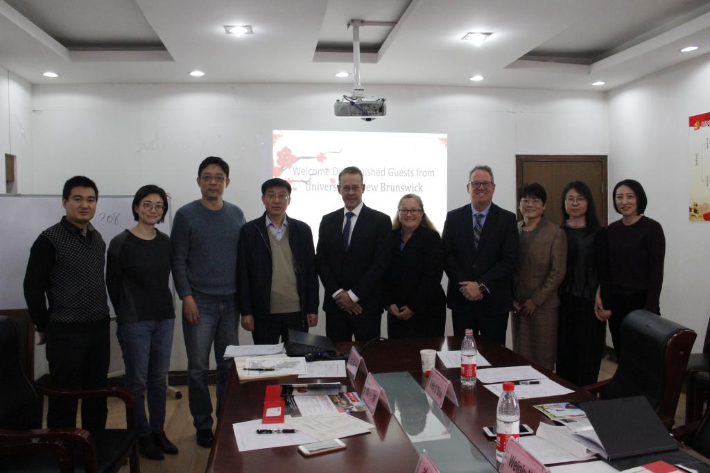1月14日上午,加拿大纽布伦兹维克大学于维秋教授等一行到访我院,随行人员有纽布伦兹维克大学继续教育中心主任Ian Allen先生,副主任Kelly O'Brian先生及语言中心主任Colleen Meagher女士。经济及学院副院长齐杨以及学院对外合作交流部、本科以及研究生教学办公室负责人参加会谈。此次会议首先就原有合作协议的修订进行探讨,就有关核心问题进行反复探讨,初步达成共建海外实习基地以及研究生双学位培养等系列协议。下午,于维秋教授与Colleen Meagher女士为学院研究生做了一场生动的报告,详细介绍了在纽布伦兹维克大学学习与生活的情况,为学院研究生赴海外进行双学位培养提供了丰富的信息。