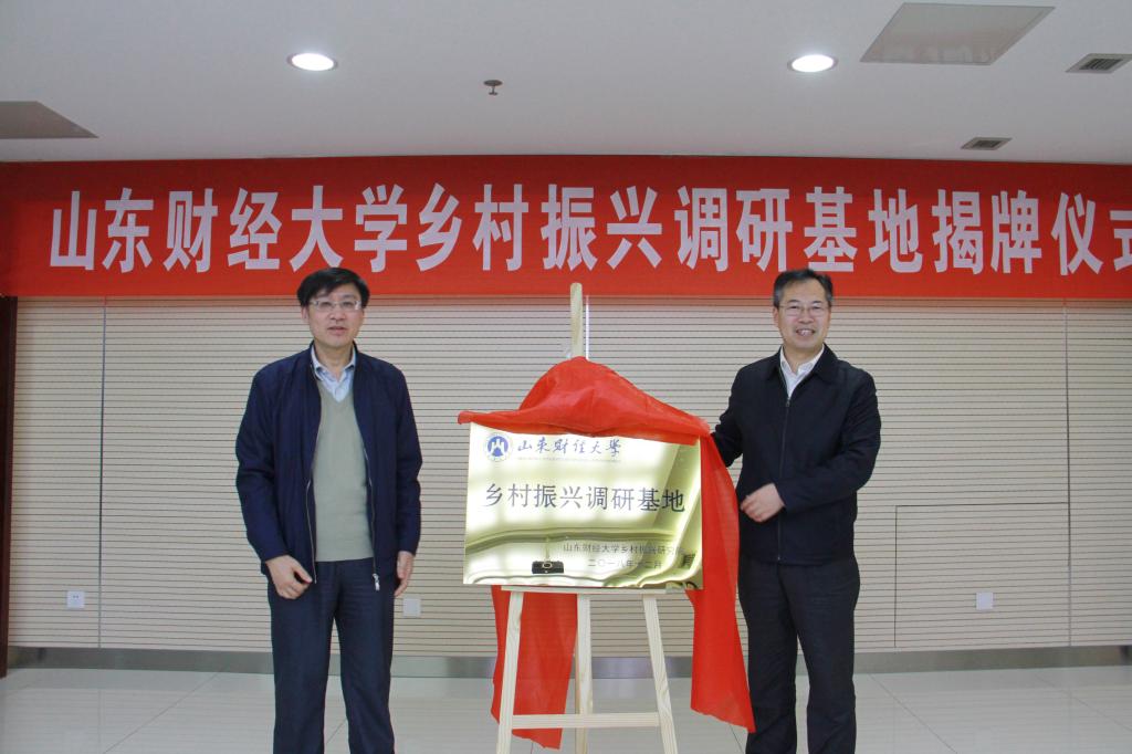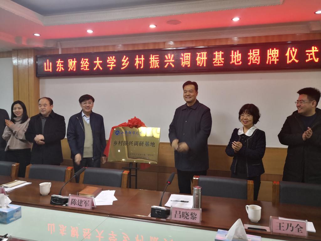 为更好贯彻落实习近平总书记打造乡村振兴齐鲁样板的指示精神,充分发挥高校智库作用,助推新旧动能转换,2018年12月25-27日,山东财经大学乡村振兴研究院先后在沂源县南鲁山镇、临沂市河东区、利津县北宋镇、滨州市阳信县设立山东财经大学乡村振兴调研基地,并签约揭牌。