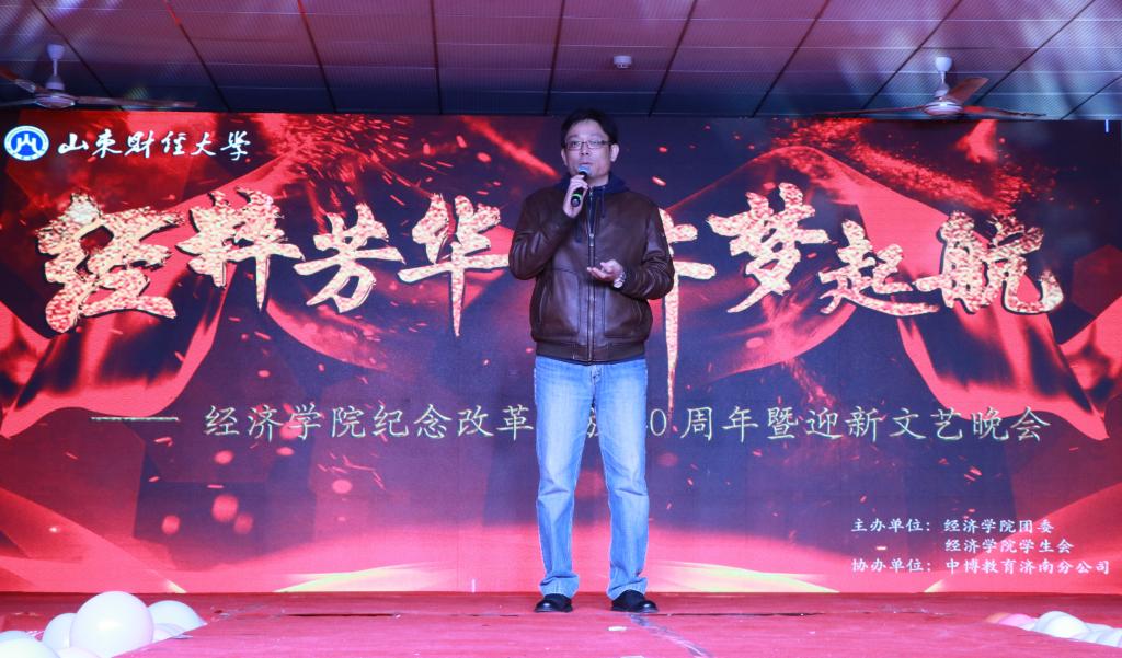 (通讯员:杨晓雯 于小桐 夏昱颀)为纪念改革开放40周年,深入贯彻落实党的十九大和习总书记系列讲话精神,展示经济学院改革创新发展的丰硕成果,激发全院师生立足新时代、奋力新作为、创造新业绩的热情,为全院学生架构展示自我青春才艺的平台,12月6日晚,经济学院“经粹芳华,济梦起航”纪念改革开放四十周年暨迎新文艺晚会于圣井校区二餐二楼举行。经济学院党委书记姜伟,校学生工作处副处长孙丽华,校就业指导处副处长杜丽娜,经济学院党委副书记仵颖涛,副院长彭留英、齐杨,经济学院全体辅导员和二级学院辅导员出席晚会。经济学院18级全体学生到场观看。