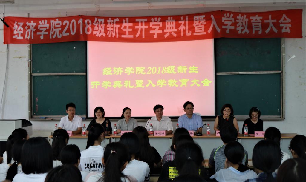 (通讯员:杨晓雯 孙俏俏)9月13日下午16:00,经济学院2018级新生开学典礼暨入学教育大会于圣井校区敏行楼B5201举行。院长董长瑞,党委书记姜伟,副院长彭留英、齐杨,院团委正科级辅导员王琦、辅导员朱海林以及教师代表徐小恒出席会议。2018级全体新生到场参加,会议由齐杨主持。