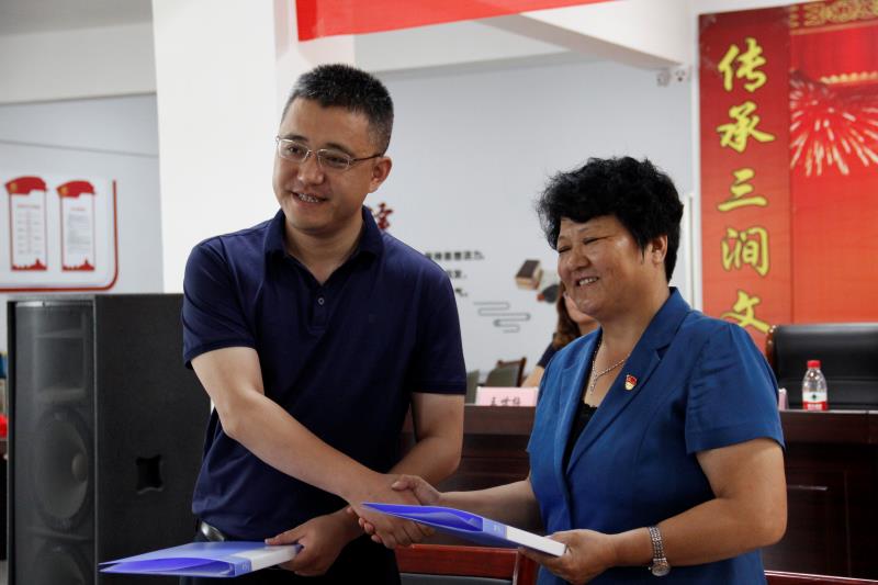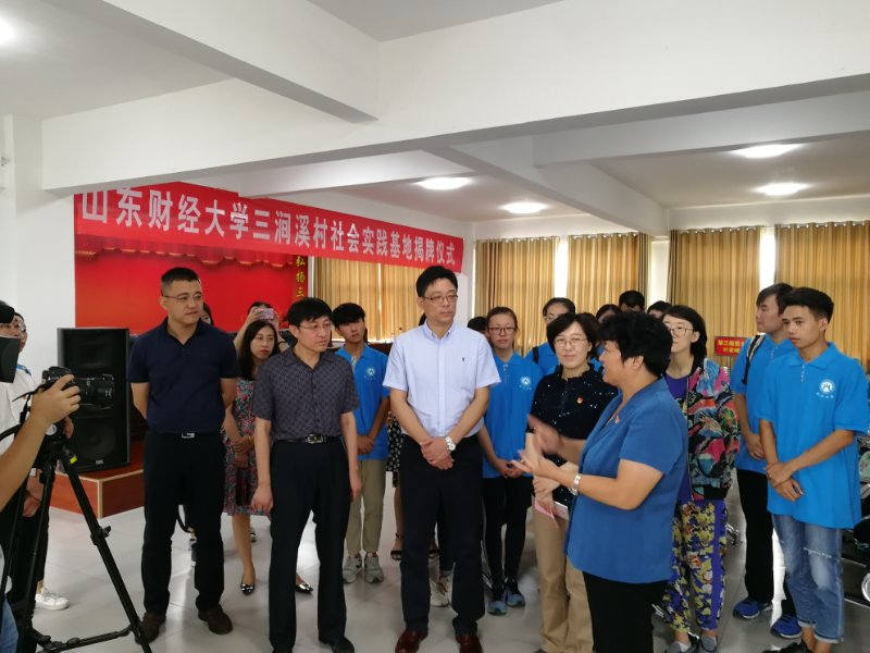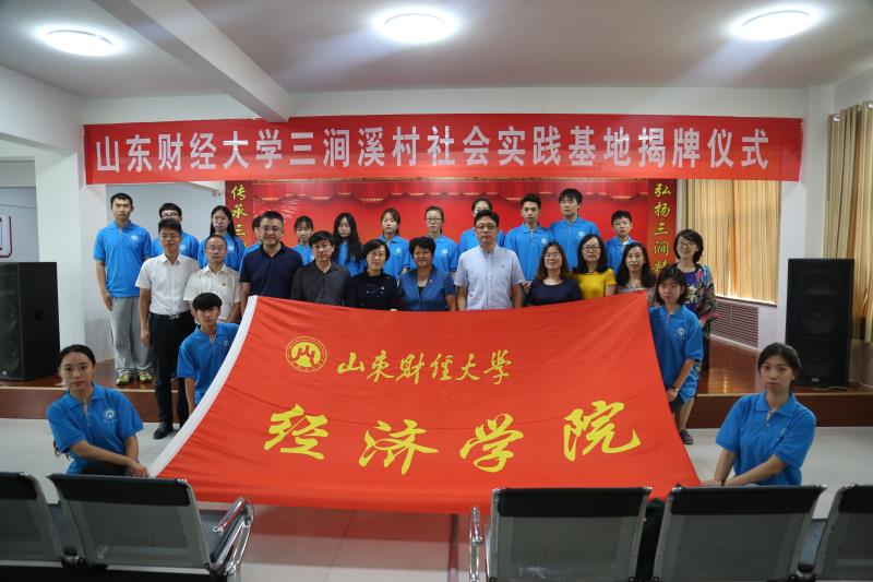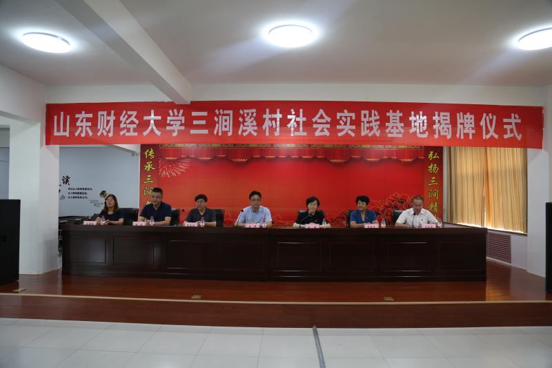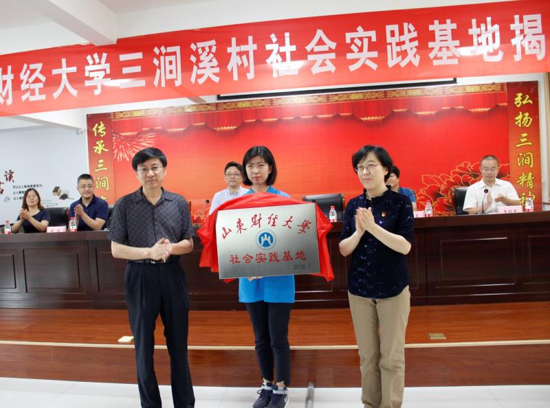 仪式上,田远与高淑贞签署社会实践基地协议书,董长瑞与石颖为“山东财经大学三涧溪村社会实践基地”揭牌。
