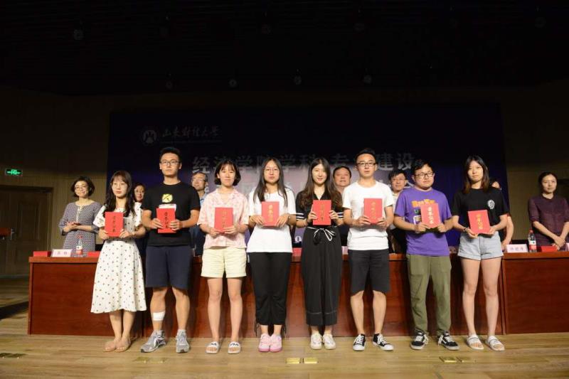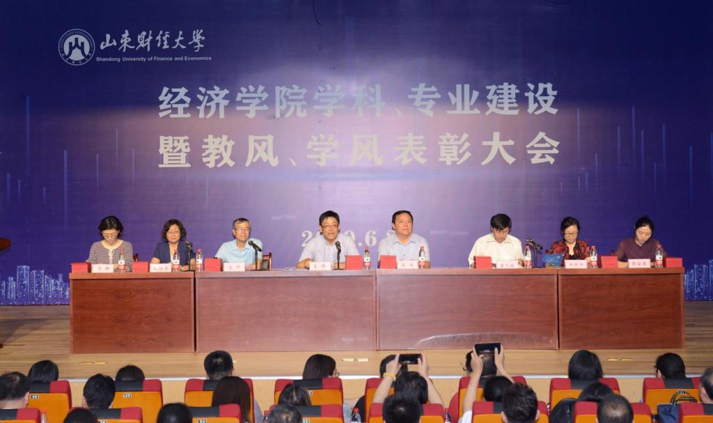王传荣宣读《关于表彰山东财经大学经济学院2018年度先进个人、先进集体的决定》。高峰宣读《山东财经大学经济学院关于表彰2018-2019学年“学业引领标兵”的决定》。