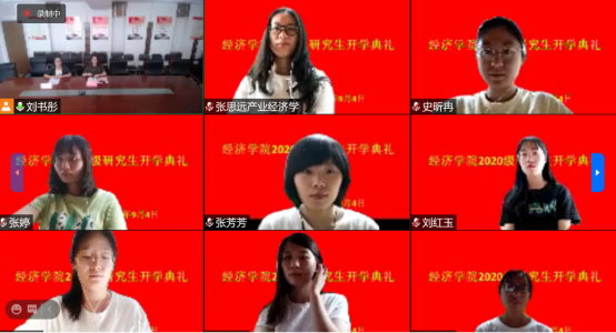 2020年9月4日上午,经济学院2020级研究生开学典礼采用线上方式成功举行。经济学院党委书记姜伟、院长董长瑞、党委副书记仵颖涛、副院长彭留英、教师代表白洁副教授、学工办主任周新秀、研究生秘书刘应涛出席了开学典礼,开学典礼由周新秀主持。