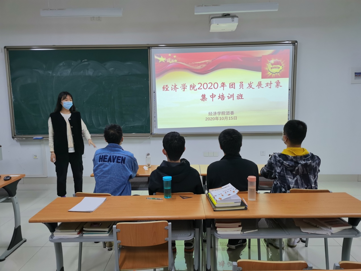 (通讯员:田舒雯)2020年10月15日,经济学院团委在圣井校区教室举办团员发展对象集中培训班,4位团员发展对象参加培训学习。