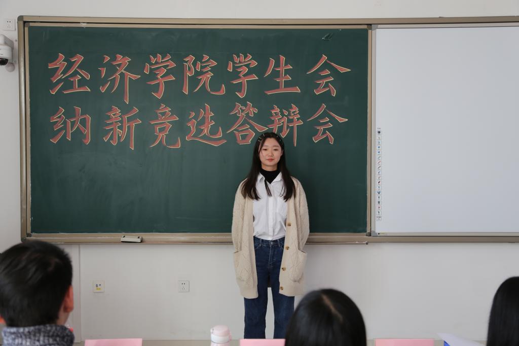 (通讯员:朱雅晴 徐清娟)11月12日上午10:30,经济学院于圣井校区七号教学楼举行学生会纳新竞选答辩会。经济学院学工办主任周新秀,党委专职组织员李冰封,团委书记付雯,就业办主任裴斐,正科级辅导员王琦、辅导员朱海林,第九届学生会主席团成员出席答辩会并担任评委,2020级新生共158位候选人参加答辩。