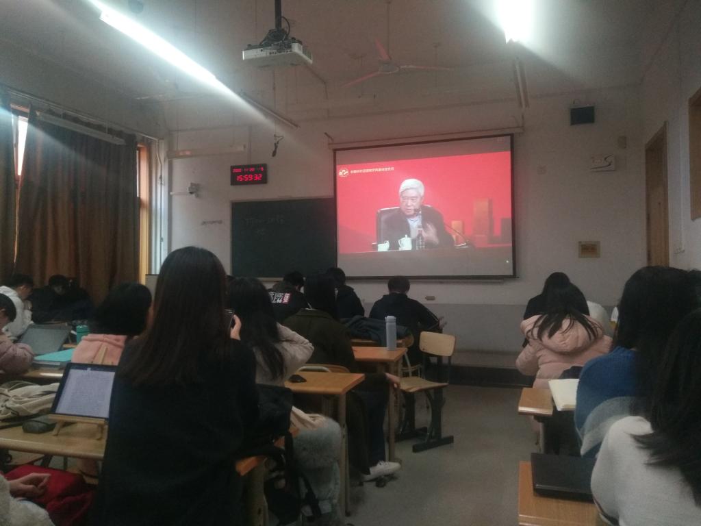 为学习贯彻习近平新时代中国特色社会主义思想和习近平总书记关于科学道德和学风建设重要指示精神,落实《关于进一步弘扬科学家精神加强作风和学风建设的意见》,2020年11月20日下午,经济学院组织2020级全体研究生在舜耕校区教学楼1401教室集体收看全国科学道德和学风建设宣讲教育报告会。中国工程院院士、神舟飞船首任总设计师戚发轫院士与敦煌研究院名誉院长樊锦诗先生分别作专题报告。学院党委副书记李冰封和同学们一起观看了此次宣讲教育报告会。