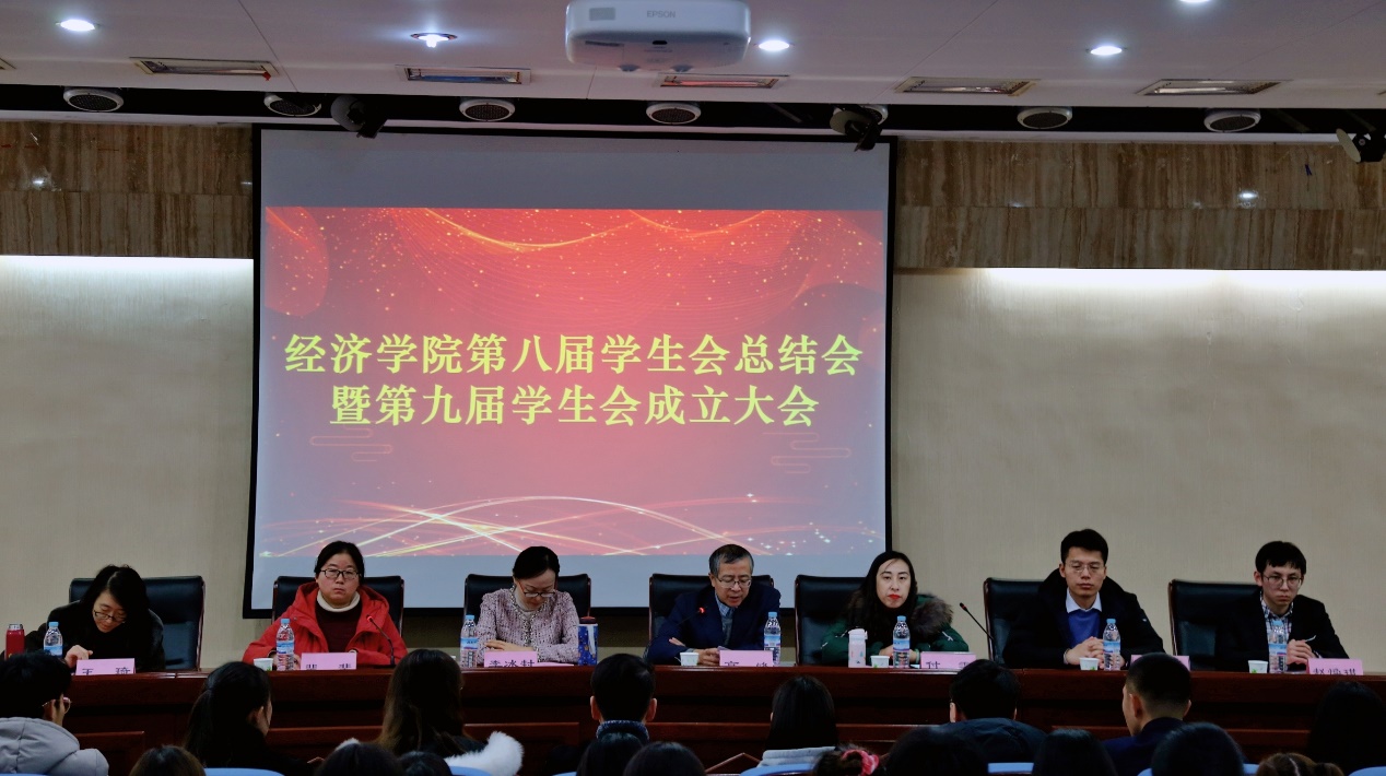 (通讯员:付雯王嘉琪)12月17号下午,经济学院第八届学生会总结会暨第九届学生会成立大会于圣井校区敏行楼举行。经济学院党委副书记高峰、李冰封,学工办主任裴斐,团委书记付雯,党委专职组织员王琦,就业办主任朱海林出席会议。第八届学生会主席及第九届学生会全体成员参加会议,会议由裴斐主持。
