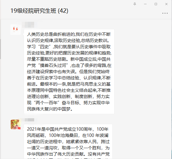 担复兴大任,做时代新人。党史思政课激励大学生们将人生价值的实现与国家复兴结合起来。研究生们课后进行了热烈讨论,同学们纷纷表示,通过收看思政课,重温了百年党史,回忆了半年发展,深入了解了党的光荣传统、宝贵经验和伟大成就,对于总结历史经验,认识历史规律,传承红色基因,深入学习领会习近平新时代中国特色社会主义思想具有重要意义。