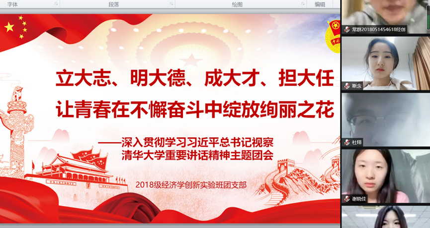 (通讯员:刘毓菲)5月4日至5月5日,经济学院组织各团支部开展学习贯彻习近平总书记视察清华大学重要讲话精神主题团日活动。