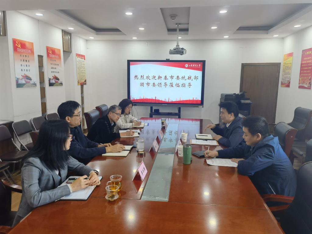 (通讯员:朱海林)10月11日下午,新泰市委统战部常务副部长刘西涛,新泰团市委书记、驻京机构党工委书记康守宝来我院考察交流,经济学院党委书记姜伟,副书记高峰、李冰封,副院长彭留英,就业办主任朱海林参加校地合作考察交流会,会议由党委书记姜伟主持。