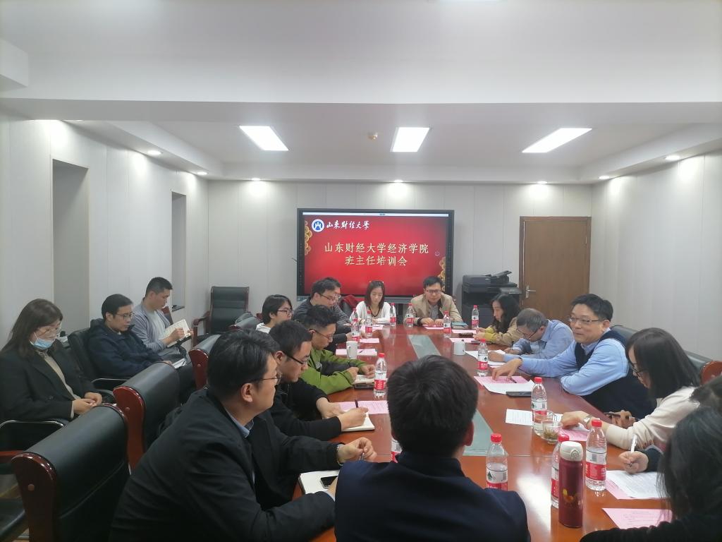 3月10日,经济学院于舜耕校区办公楼1208召开班主任培训会,学院党委书记姜伟、学院党委副书记高峰、李冰封及全体辅导员和班主任老师参加了会议,会议由学工办主任裴斐主持。