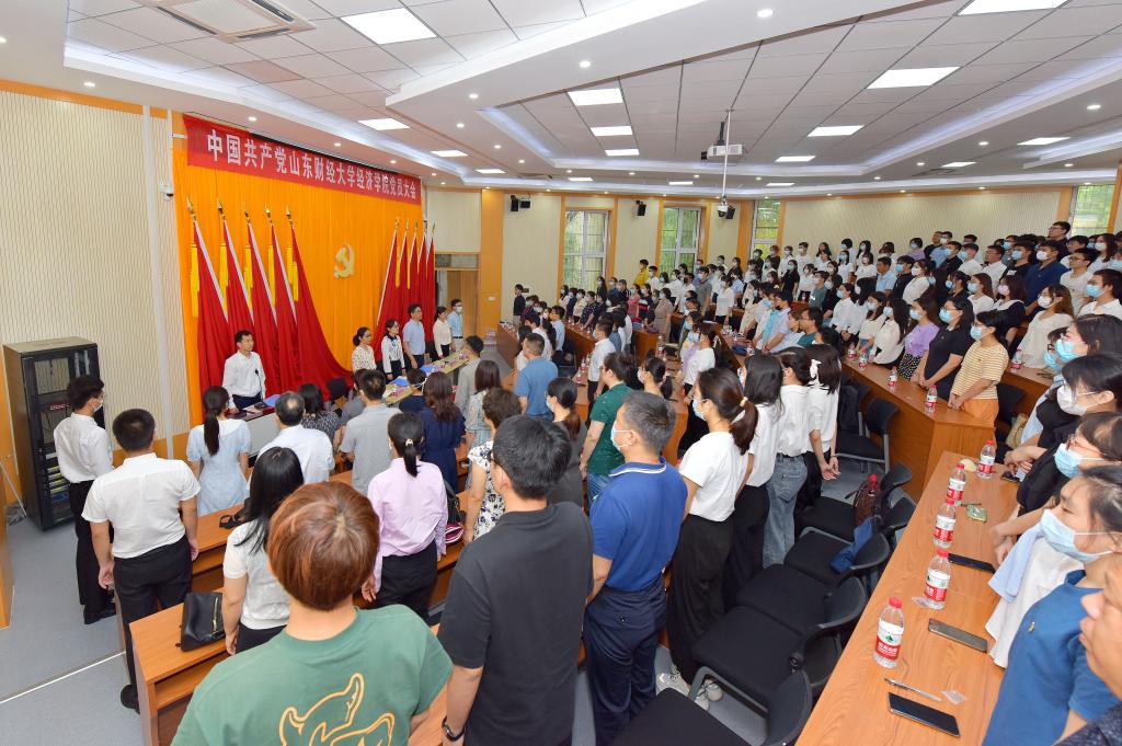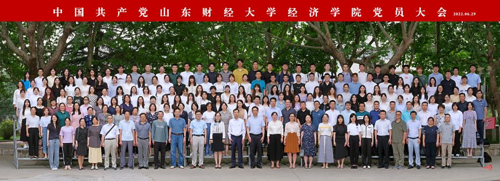 中国共产党山东财经大学经济学院党员大会圆满完成各项议程,在雄壮激昂的《国际歌》声中胜利闭幕。随后全体党员面对党旗重温入党誓词。会后大家进行合影留念。