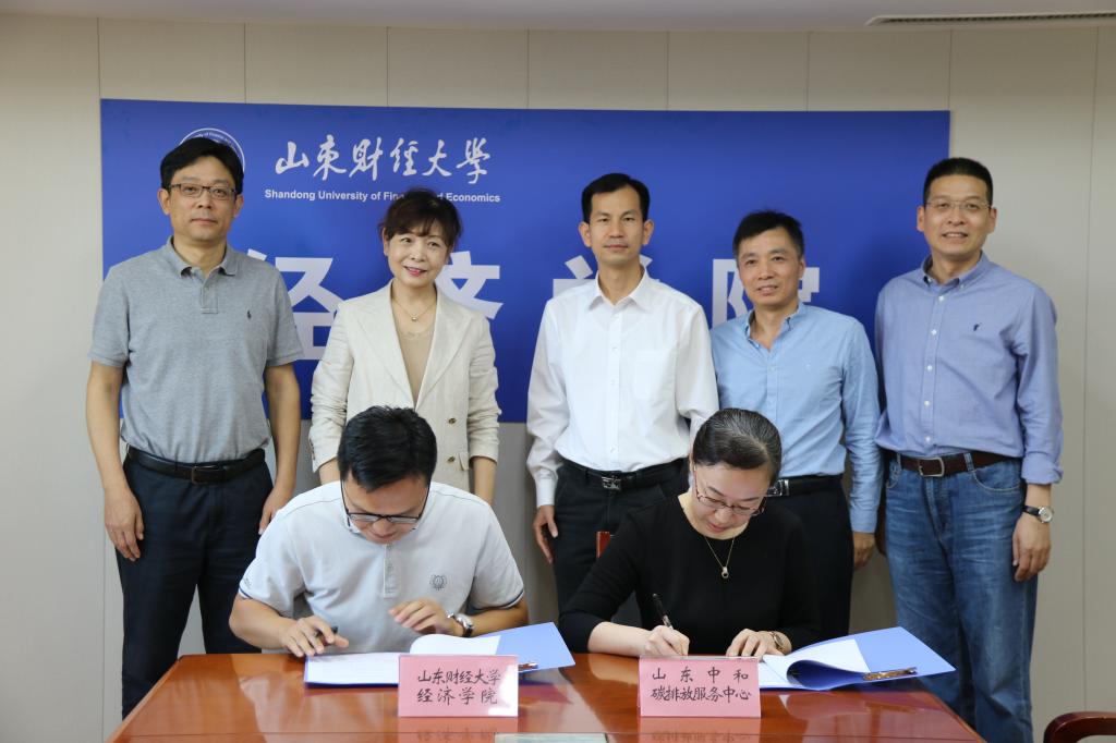 9月23日下午,山东财经大学经济学院与山东中和碳排放服务中心在舜耕校区办公楼1208会议室举行战略合作签约仪式。山东财经大学党委委员、副校长、经济学院院长谢申祥,经济学院党委书记姜伟,党委副书记李冰封、陈静,副院长崔宝敏、张明志,经济学院教授、博士生导师刘华军,山东中和碳排放服务中心总经理郑静等出席活动。会议由姜伟主持。