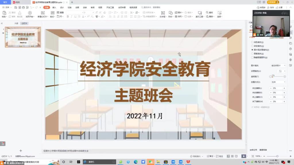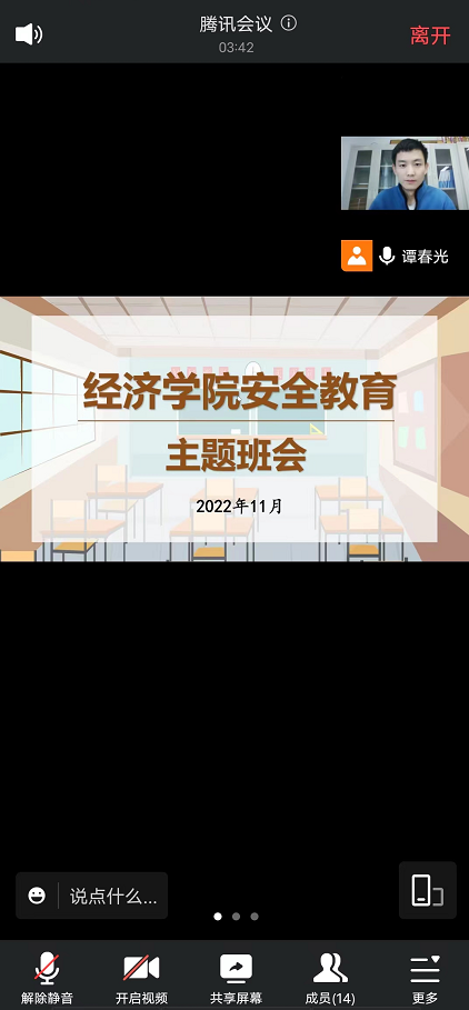 11月14日,经济学院召开学生工作会议,党委副书记李冰封全面传达了学校学生工作会议精神,要求大家严格落实执行学校疫情防控相关政策,加强对学生的安全教育,做细做实各项日常管理工作。11月15日—11月18日,经济学院全体辅导员通过线下线上结合的方式给各班级召开了安全教育主题班会,全体学生参加了主题班会。