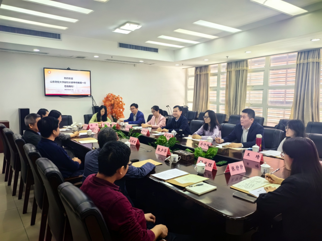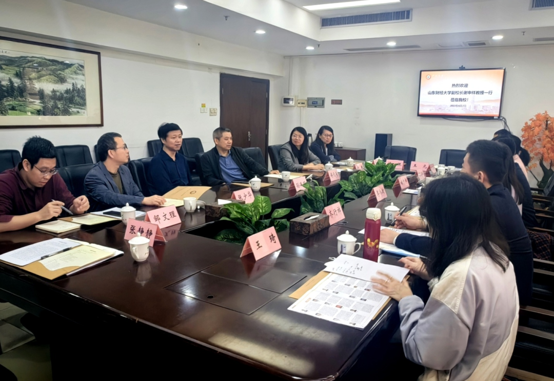 4月7日上午,山东财经大学副校长谢申祥带队赴广州大学经济与统计学院调研。广州大学副校长孙延明、经济与统计学院院长傅元海等相关负责人陪同座谈。双方围绕学科建设、科学研究、研究生培养、学生就业、社会服务等工作进行深入交流,尤其是就数字经济的专业建设、大学生就业等工作进行了重点探讨。