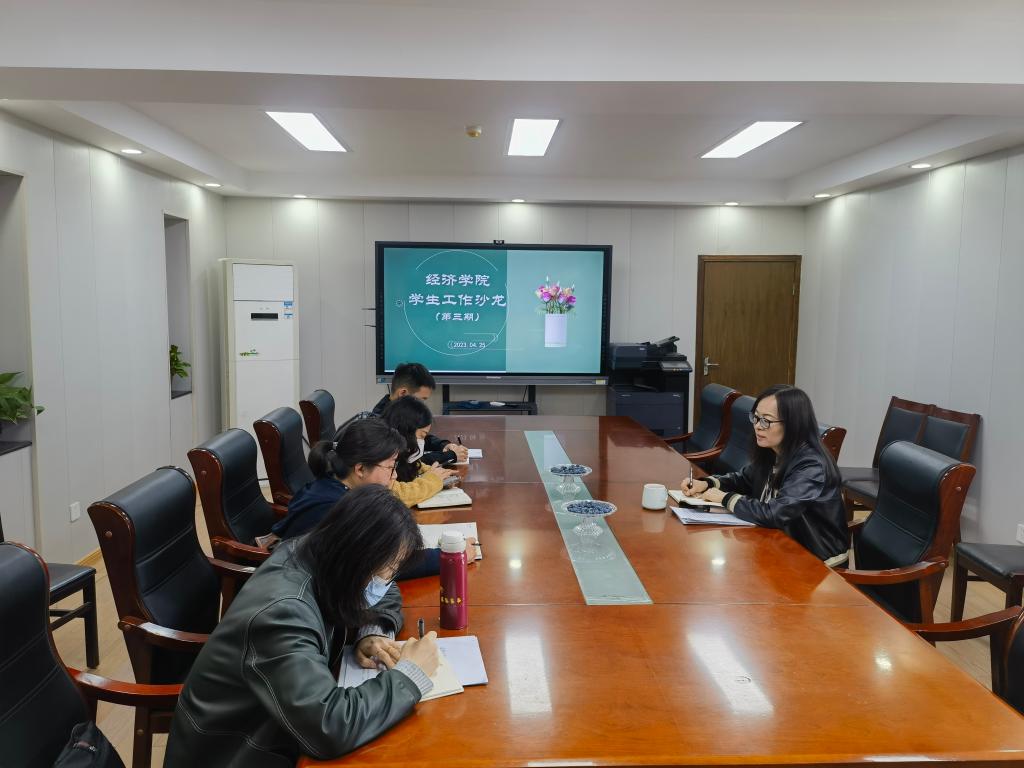 经济学院“学工沙龙”是学院落实“三全育人”工作体系,实施学生工作队伍育人能力提升计划的重要举措,自本学期开学以来已成功举办三期。下一步将继续通过院内学工队伍交流和院内外嘉宾分享的形式,以轻松舒适的交流环境和畅所欲言的交流氛围,努力把“学生工作沙龙”活动打造为学生工作队伍交流经验、探讨工作、共享成果、提升能力、研究理论的平台,同时积极将其打造为我院学工队伍建设的亮点和特色。