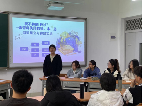 活动分两个阶段进行,两组同学分别着眼于两个主题进行分享展示。在第一阶段,第一组同学聚焦“人口与经济发展的关系”,结合当前社会变迁的现实背景,针对当下青年面临的就业难问题,点明就业难这一现象的普遍性,进而从多个社会层次提出应对策略,论述深入浅出,引人深思;在第二阶段,第二组同学围绕“中国式现代化的特征与实现路径”这一主题,从中小城市与年轻人就业选择之间的关系入手,通过援引数据,阐述了年轻人就业选择与城市发展之间的矛盾与联系。2022级经济学(实验班)同学将眼下流行的“淄博烧烤”作为案例,指出中小城市在发展过程中应当充分挖掘自身优势,走异于大城市的特色建设路线,抓住吸引就业的机遇。双方讨论激烈,举一反三,思维活跃。
