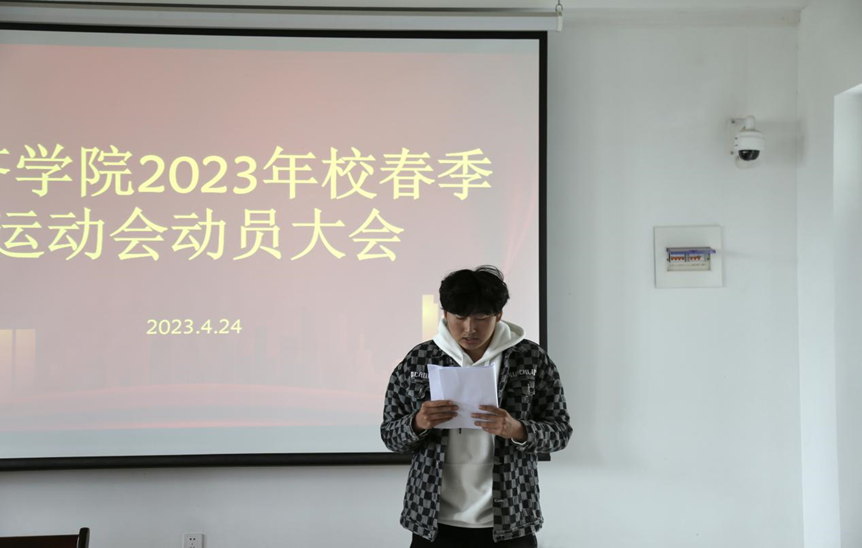 学生会主席矫宇航宣读《经济学院2023年校春季运动会工作方案》,部署各工作组的职责和要求,详细部署工作组分工、职责要求、日程安排、看台活动计划、观众工作安排、精神文明奖评选标准等。