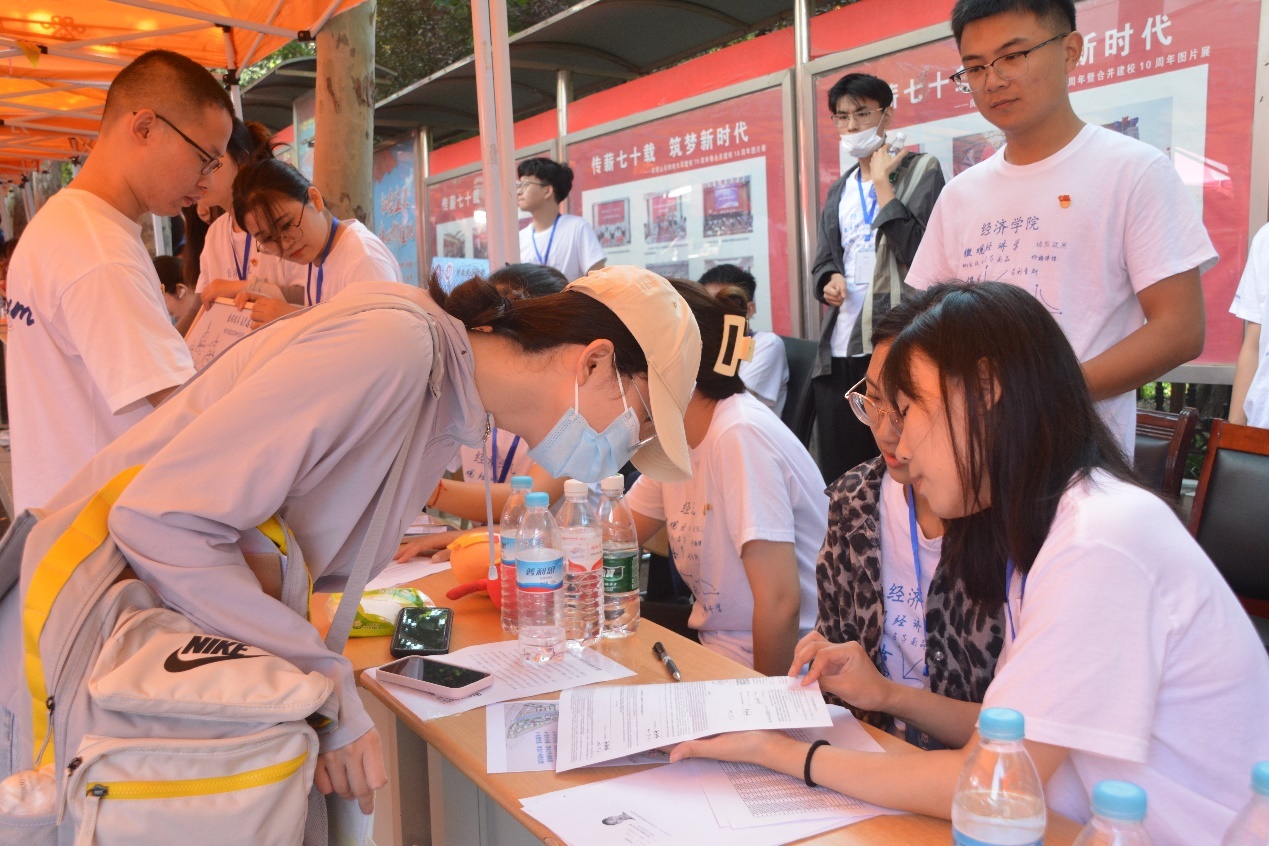 志愿者们往返于报到点与宿舍楼,为新生答疑解惑,搬运行李。“欢迎加入经济学院”“我帮你拿行李”“宿舍楼请向这边走”,每一句亲切话语,每一次热情引导,都是经济学院学长学姐对新生最真挚的关怀。
