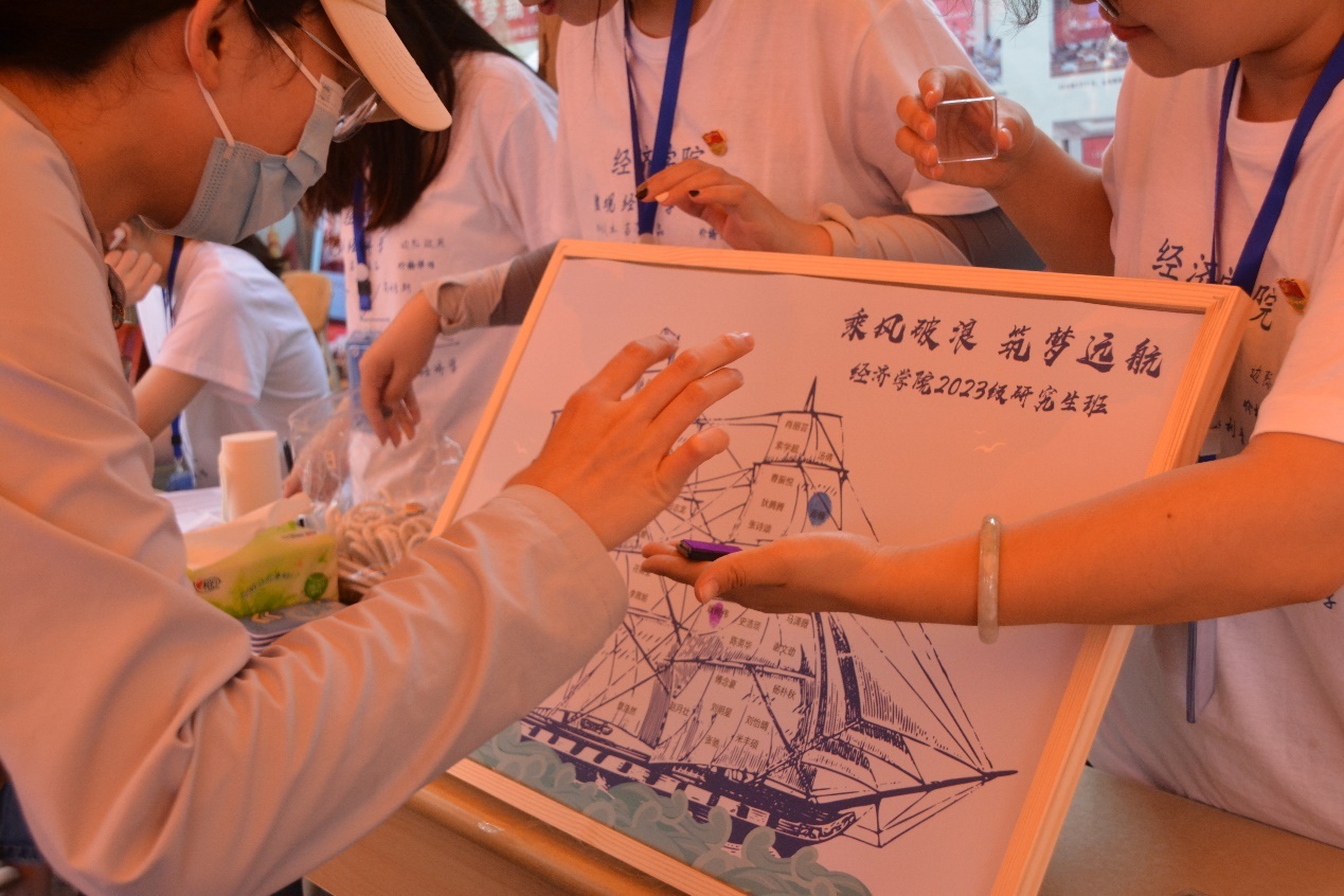 现场秩序井然,氛围轻松愉悦。截至下午4点,58名研究生新生顺利报到,经济学院2023级研究生迎新工作圆满结束。跨越千里,赴山海之约;追逐梦想,从经院启航,希望2023级研究生新同学能以昂扬的斗志迎接新的挑战,让青春之花在奋斗中绽放绚丽的色彩。