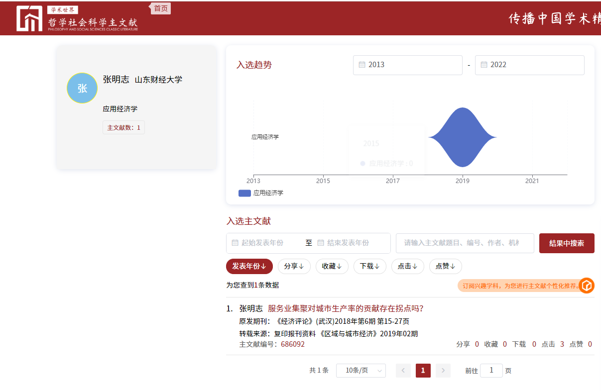 近日,由中国人民大学建设的中国哲学社会科学自主知识体系数字创新平台之“主文献体系”平台发布了2013-2022入选论文。在山东财经大学27名教师的40篇入选论文中,山东财经大学经济学院共有13篇论文入选主文献,其中包括谢申祥教授的5篇论文,刘华军教授的6篇论文,陈景华教授的1篇论文,张明志副教授的1篇论文。