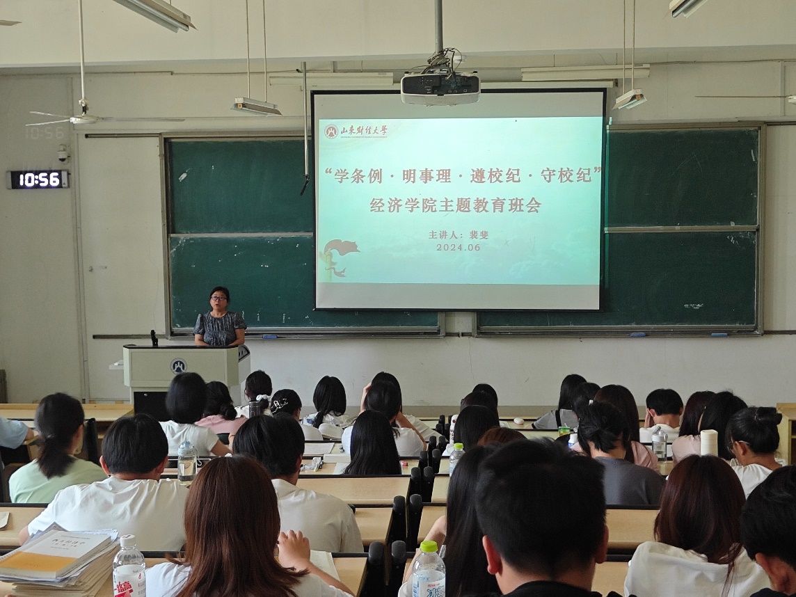 (通讯员:何瑞佳)为深入贯彻落实学校第二次党代会精神,规范同学们的言行举止,增强纪律观念,严明校规校纪,帮助同学们养成良好的学习和行为习惯,形成良好的校风、学风、班风,6月5日至6月12日,经济学院各班级召开“学条例·明事理·遵校纪·守校纪”主题教育班会,辅导员及全体学生参加了主题班会。