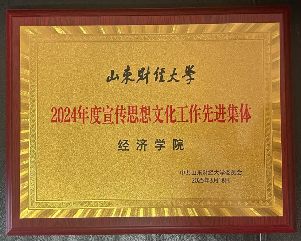 近日,山东财经大学宣传思想文化工作会议召开,经济学院荣获2024年学校宣传思想文化工作先进集体。