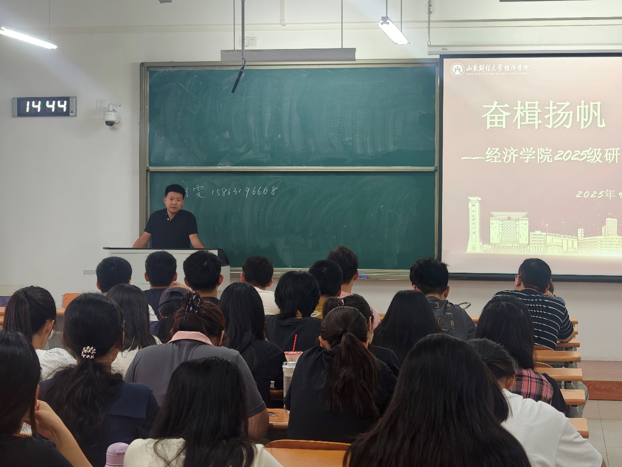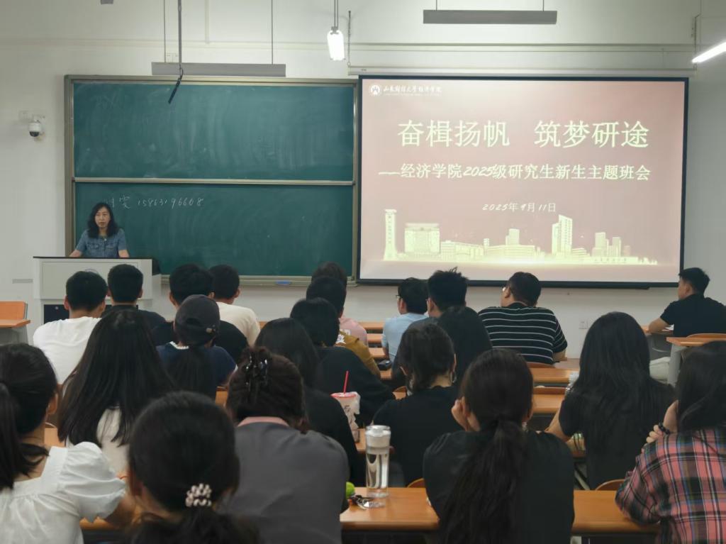 为引导帮助2025级研究生新生尽快适应环境,完成角色转变,树立职业生涯规划意识,经济学院于9月11日下午在章丘校区7号教学楼召开“奋楫扬帆筑梦研途”2025级研究生新生主题班会。经济学院研究生辅导员付雯、管光栋出席班会,2025级全体研究生新生参加。