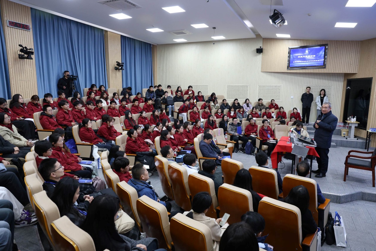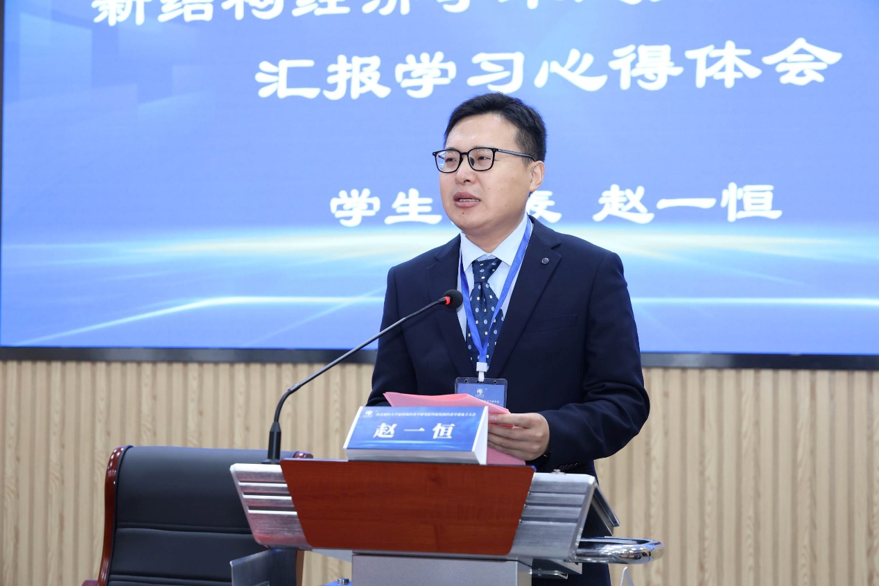 随后�2024级新结构经济学卓越人才实验班的赵一恒同学作为学生代表发言。赵一恒同学在汇报中回忆了自己与新结构经济学的不解之缘,分享了自己收到林毅夫教授回信时的激动和喜悦之情,并代表全班同学向林毅夫教授及各位领导老师做出承诺。他表示,作为新一代新结构经济学人,他们有勇气,也有信心,能够接过发展新结构经济学的接力棒,继续谱写这门学科的崭新篇章,为实现中华民族伟大复兴,构建人类命运共同体,贡献属于新结构经济学人的青春力量�