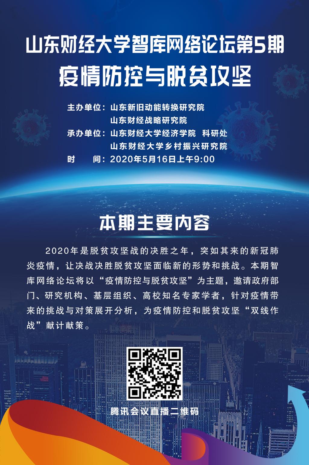 2020年是脱贫攻坚战的决胜之年,突如其来的新冠肺炎疫情,让决战决胜脱贫攻坚面临新的形势和挑战。本期智库网络论坛将以“疫情防控与脱贫攻坚”为主题,邀请政府部门、研究机构、基层组织、高校知名专家学者,针对疫情带来的挑战与对策展开分析,为疫情防控和脱贫攻坚“双线作战”献计献策。
