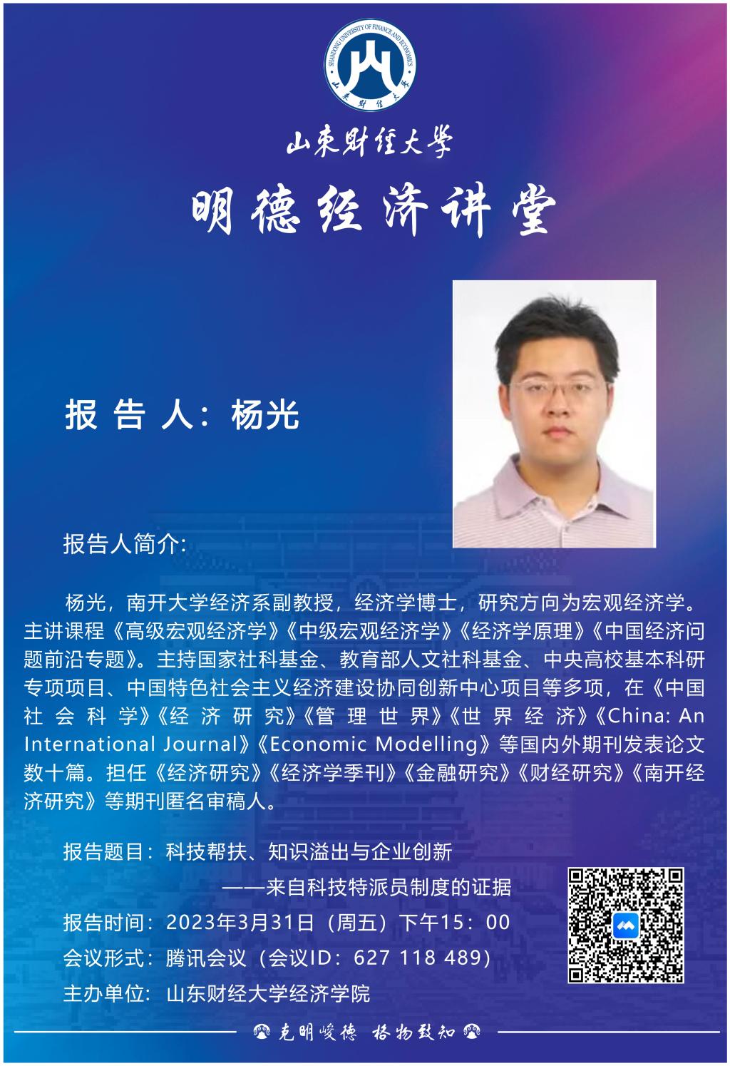 山东财经大学明德经济讲堂:科技帮扶、知识溢出与企业创新