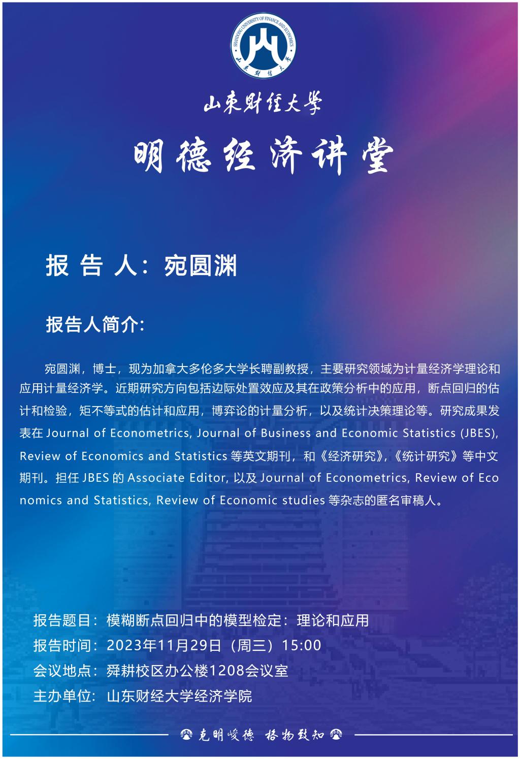 山东财经大学明德经济讲堂:模糊断点回归中的模型检定 -- 理论和应用