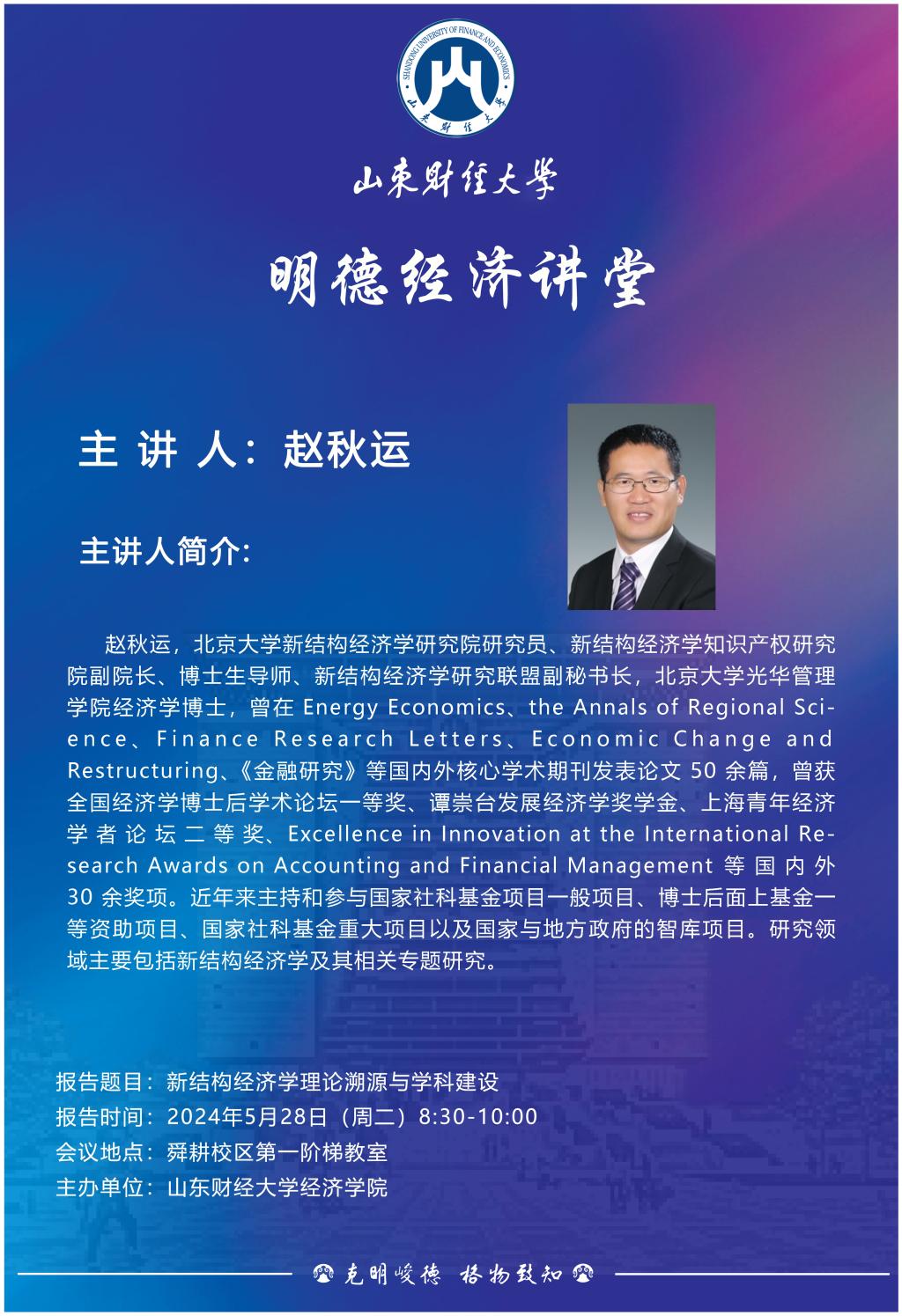 山东财经大学明德经济讲堂:新结构经济学理论溯源与学科建设