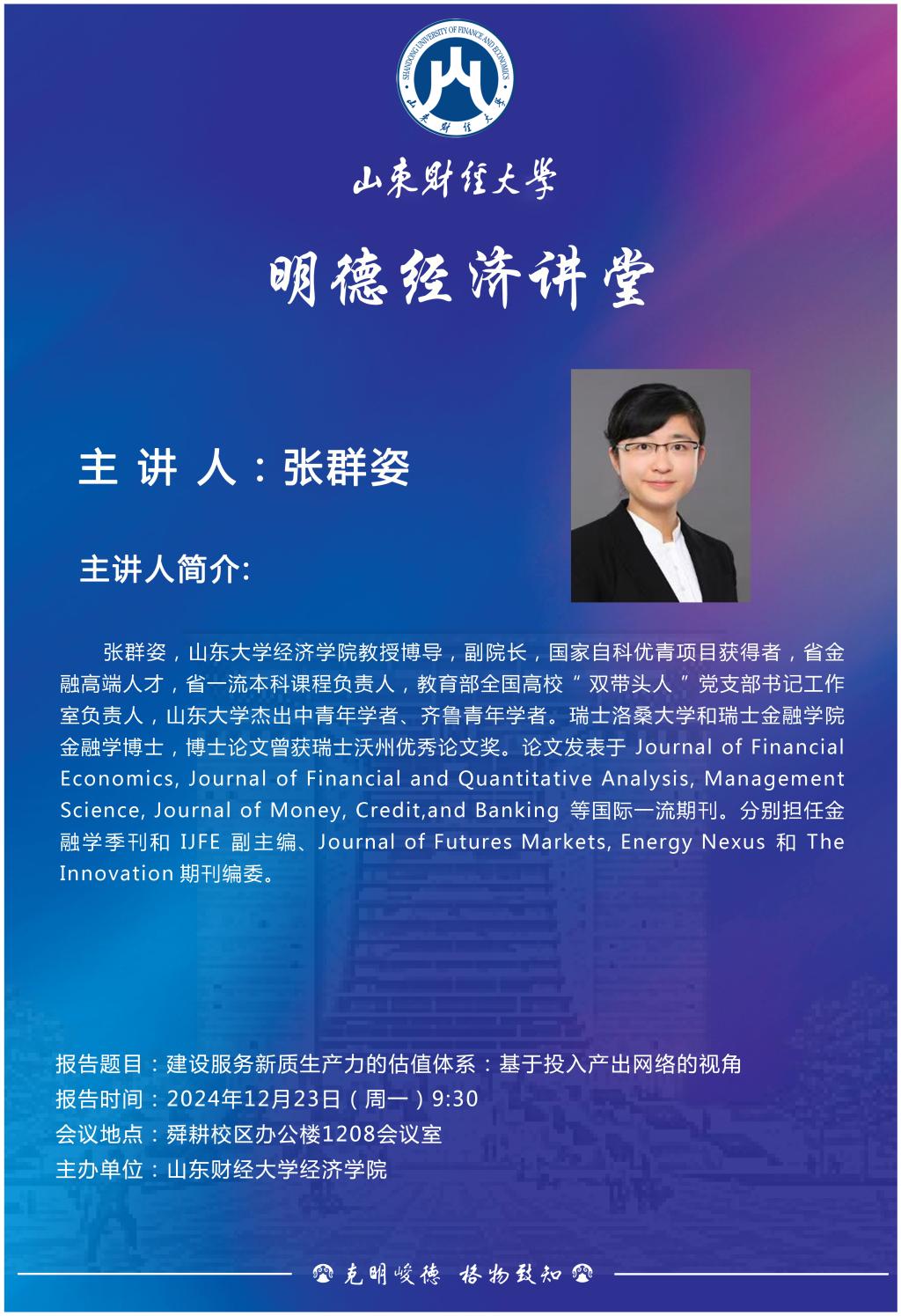 山东财经大学明德经济讲堂:建设服务新质生产力的估值体系:基于投入产出网络的视角