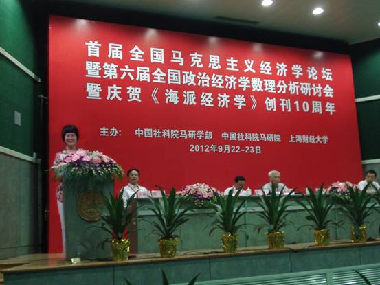 2012年9月22日-23日,“首届全国马克思主义经济学论坛暨第六届全国现代政治经济学数理分析研讨会暨庆贺《海派经济学》创刊十周年”在上海财经大学隆重举行。本次论坛由中国社科院马克思主义研究学部、中国社科院马克思主义研究院、上海财经大学联合举办,来自全国知名高校及研究单位的一百多位专家学者参加了本次会议。