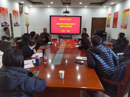 为进一步做好2022年度国家“两金”项目申报工作,提升我院教师承担重要科研项目的能力,2021年12月1日,由我院主办的明德经济讲堂在1208会议室顺利举行。本期明德经济讲堂特别邀请到上海交通大学环境科学与工程学院耿涌院长作报告,研讨会由山东财经大学经济学院齐杨副院长主持,学院部分教师参与本次学术报告。