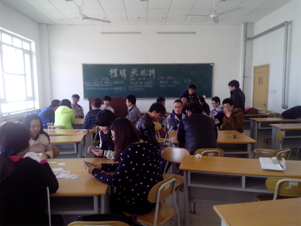 3月15日下午2:00,经济学院在圣井校区敏行楼B5401、B5402和B5403教室举办了“以棋会友”棋牌类综合竞赛。经济学院圣井校区2012级、2013级各班选手参加比赛。