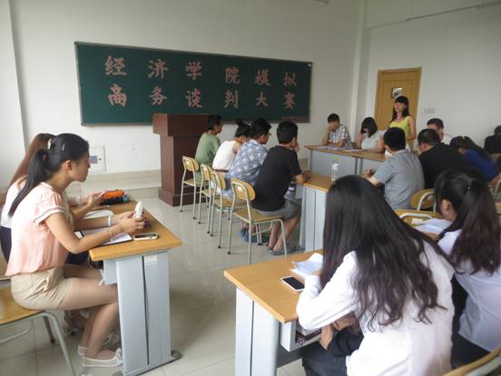 6月20日下午2:00,由我院学生会举办的模拟商务谈判大赛在圣井校区敏行楼B5308教室顺利举行。我院圣井校区各班部分同学到场参加。