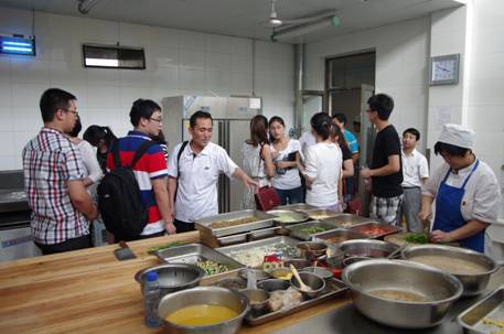 学生党员在饮食服务中心综合办公室主任、第一党支部书记刘宝璋老师、舜耕校区食堂管理科科长张克雷老师的带领下,参观了舜耕校区学生二食堂。张老师向同学们介绍了食堂的管理和运营情况。学生党员零距离观察到了食堂的管理,了解了食堂的基本操作流程,知道了自己吃的馒头、喝的稀饭、用的餐具,是经过哪些工序走到餐桌的,感觉到自己吃的放心、安心;学生们体会到了食堂管理的复杂与细致,食堂员工的工作性质与强度,也见识了很多先进的炊事机械设备。