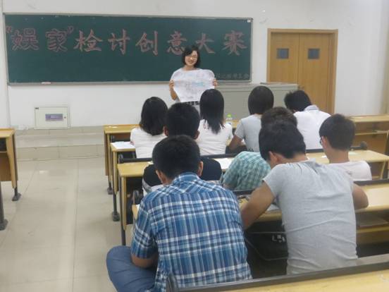 5月22日晚6:30,由我院学生会主办的“娱家”检讨创意大赛在圣井校区敏行楼B5106教室举办。我院圣井校区11级各班学生代表参加本次大赛,我院学生会相关负责人担任评委。