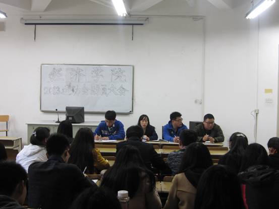 4月24日、26日,经济学院分别于舜耕、圣井校区召开2013年校春季运动会动员大会,团总支辅导员付雯老师及学生会主席团成员出席本次会议,我院全体运动员、啦啦操队员,以及学生会成员到场参加。