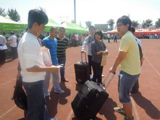 14号下午,我院迎来了迎新工作的阵阵高潮,一批又一批新生和家长来到学校。接站人员热情的帮新生们提行李,抵达报到处后,志愿者们不厌其烦地为新生讲解报到流程并指导他们完成报到;在家长接待处,工作人员为随行家长端茶倒水,并不断向他们介绍学院有关情况;在引导新生入住组,工作人员不辞辛苦帮新生将行李搬至宿舍。