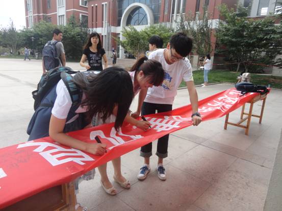 为提高大学生的诚信意识,自觉抵制考试作弊行为, 创建优良考风、学风,6月28日,我院学生会于明水校区教学楼凯旋门前举办主题为“拒绝沉迷网络,创建优良学风”的横幅签名活动。