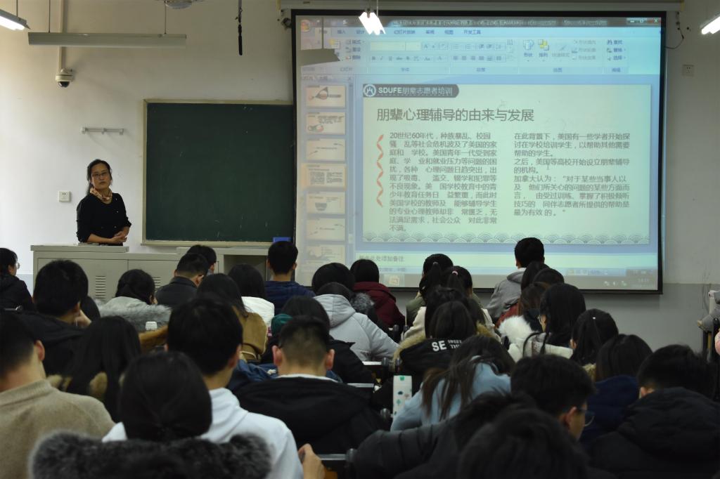 (通讯员:杨晓雯 夏昱颀 孙俏俏 常群)为普及心理健康知识,促进校园朋辈互助,及时有效帮助身边同学解决成长问题,构建积极健康向上的和谐校园,经济学院分别于12月18日晚、12月20日下午,在圣井校区敏行楼B5106、舜耕校区教学楼开展朋辈志愿者基础知识培训大会。本次培训会分别由国家三级心理咨询师、经济学院朋辈志愿者培训讲师团成员、学工办主任周新秀,经济学院朋辈志愿者培训讲师团成员、辅导员朱海林主讲,16、17、18级朋辈志愿者参加。